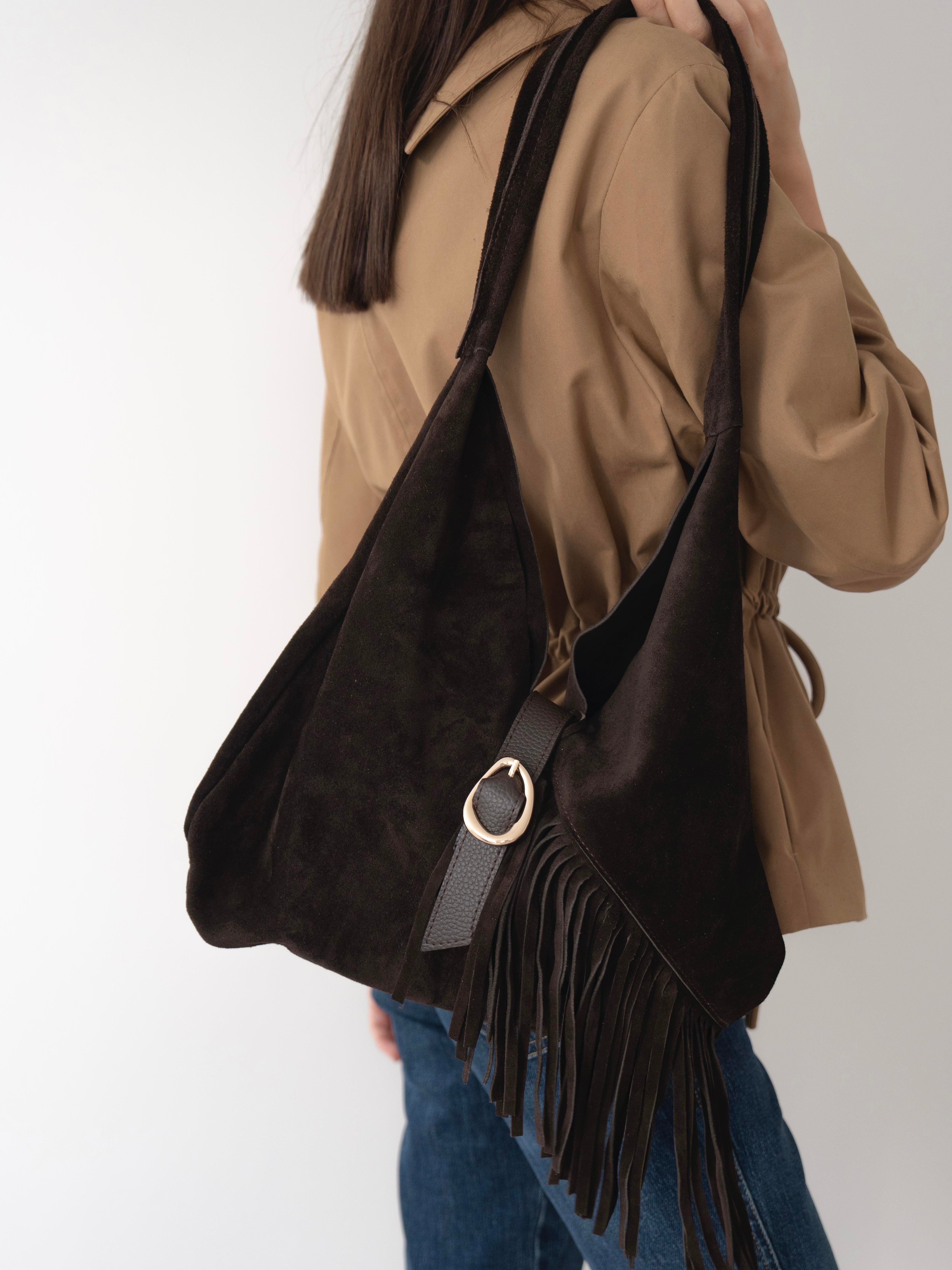 362 Kahve Hakiki Süet Kadın Çanta