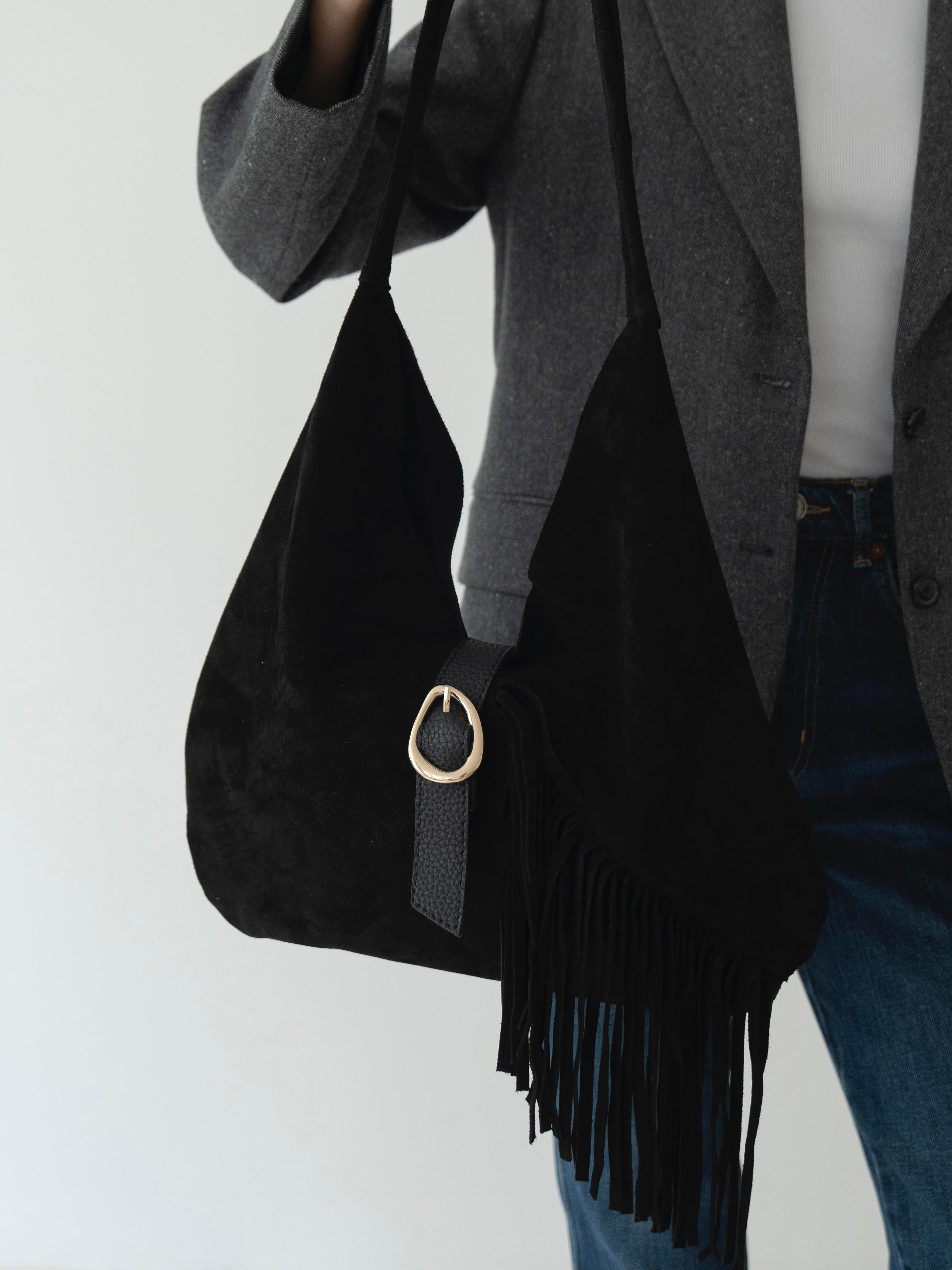 362 Siyah Hakiki Süet Kadın Çanta
