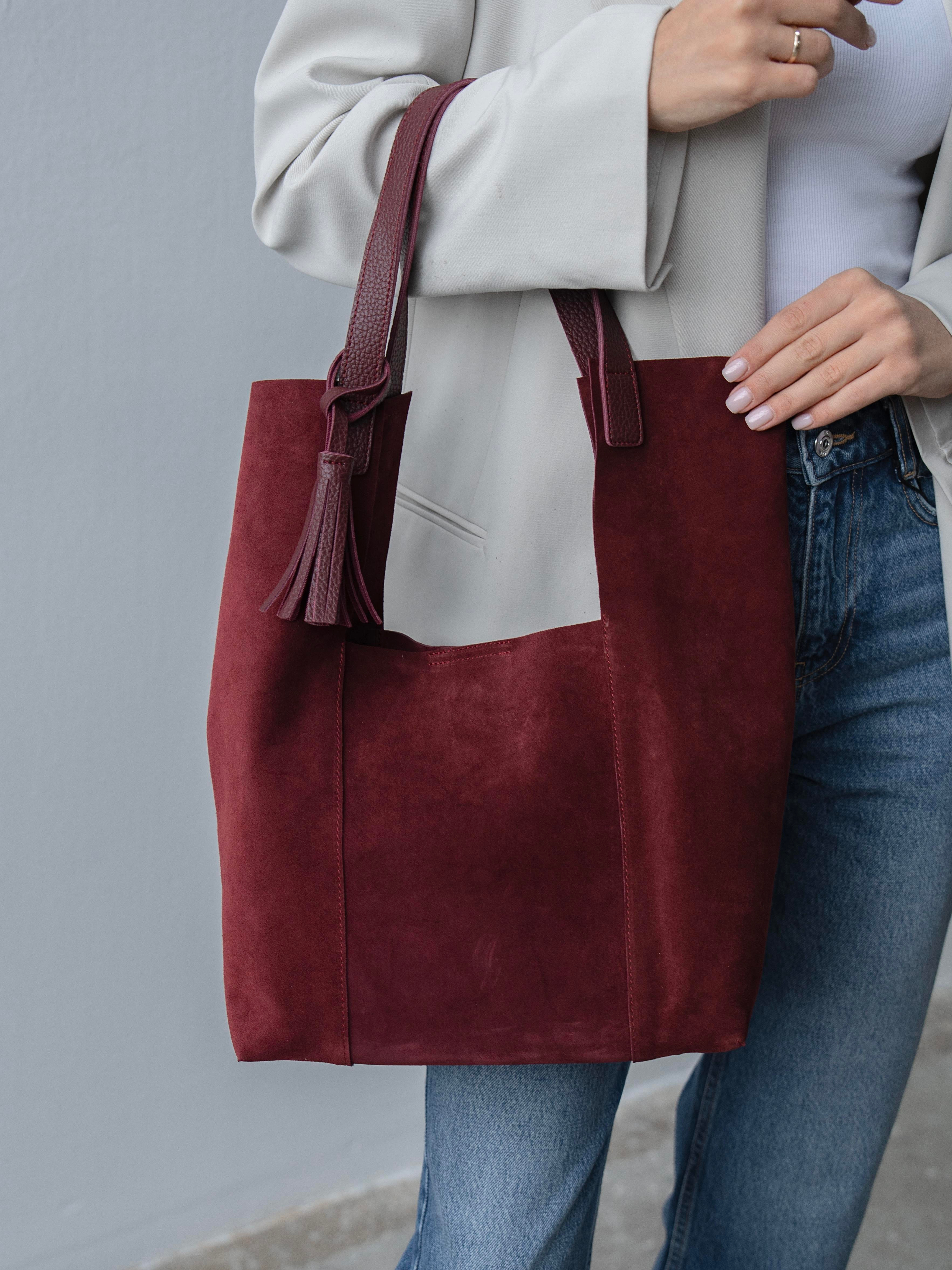 6414 Bordo Süet Hakiki Süet Kadın Çanta