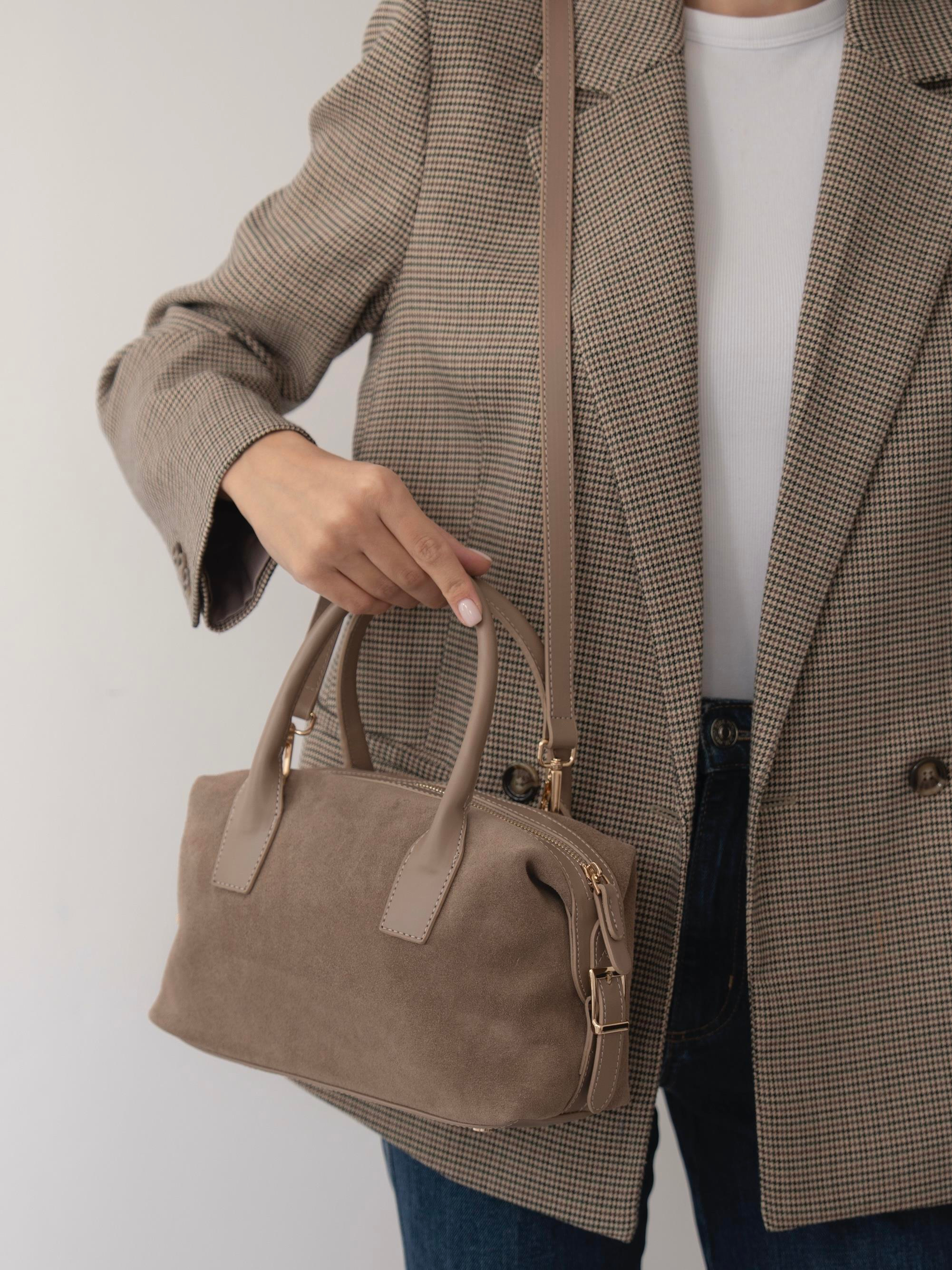 6417 Vizon Süet Hakiki Deri Kadın Çanta