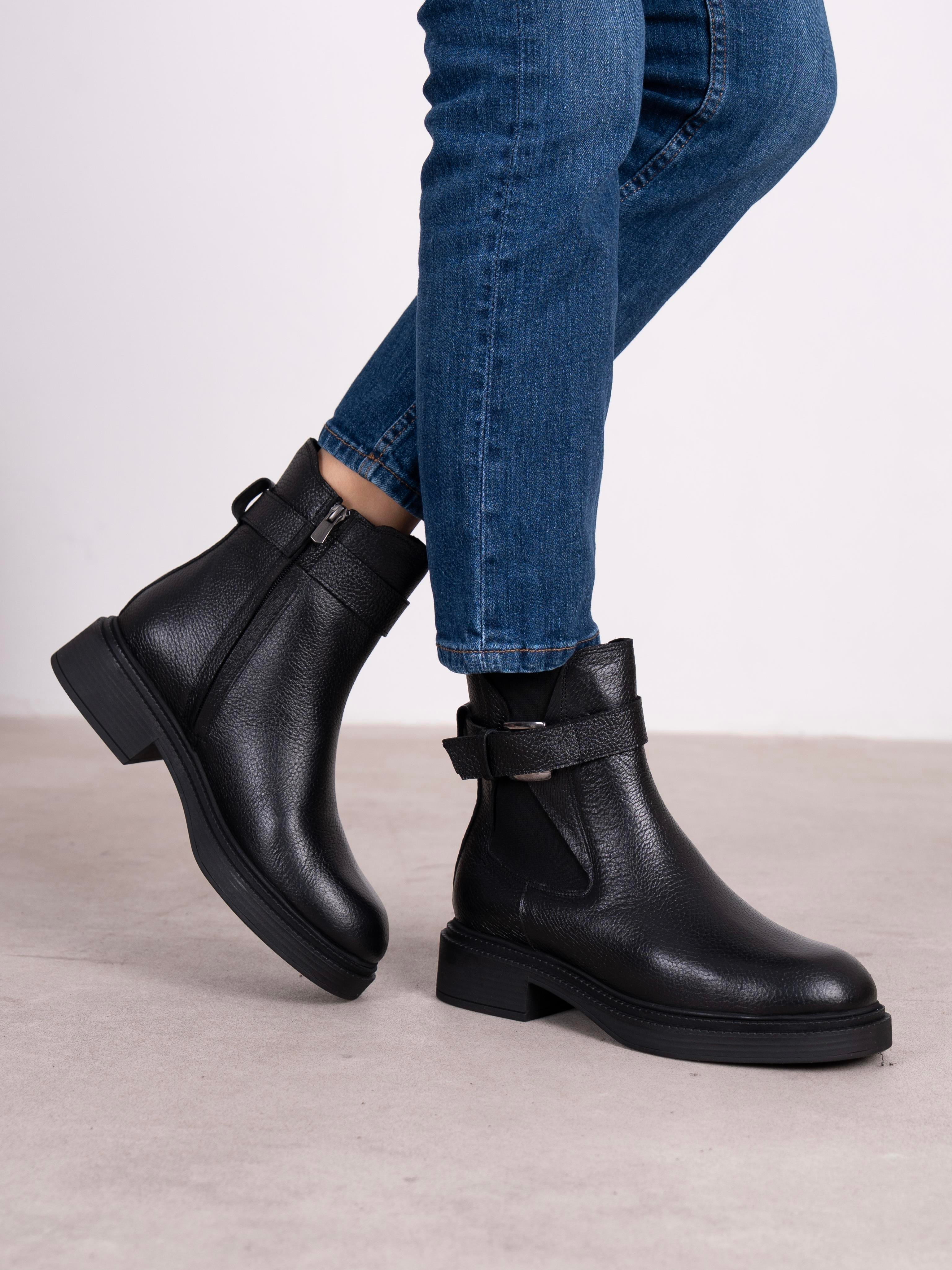 Blen Siyah Hakiki Deri Kadın Bot