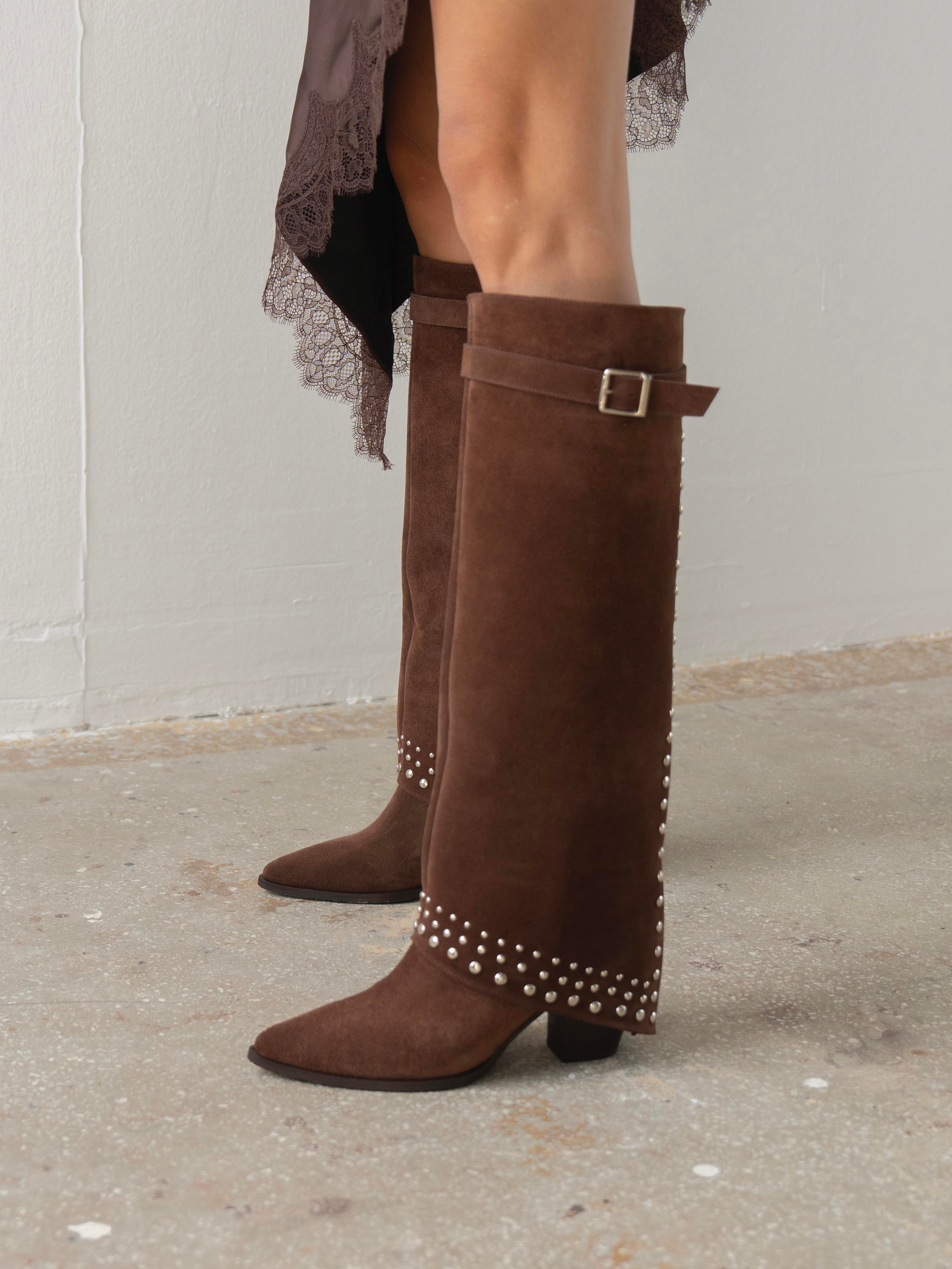 Codin Kahve Süet Troklu Hakiki Deri Kadın Çizme