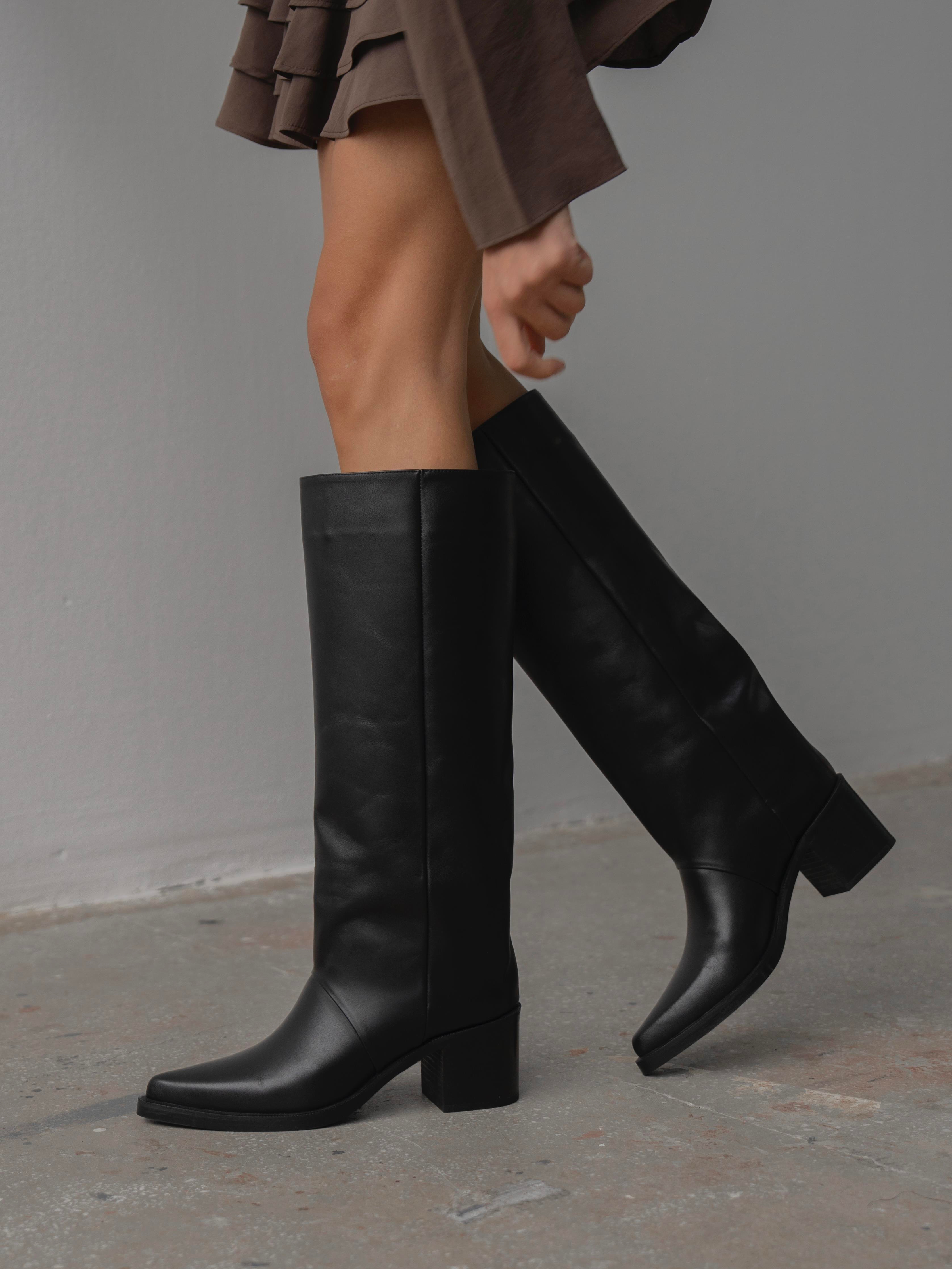 Ebate Siyah Hakiki Deri Kadın Çizme