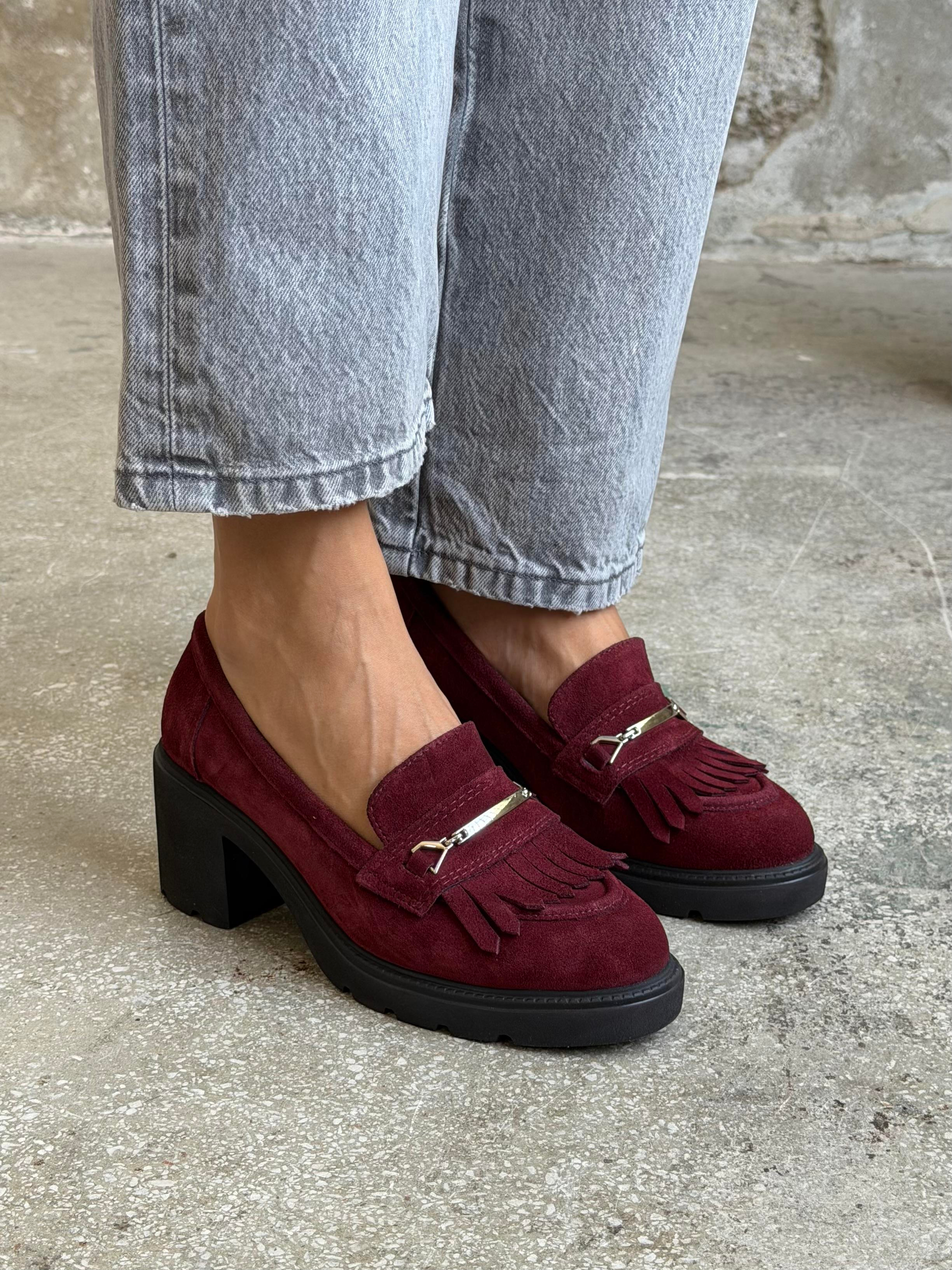 Epis Bordo Süet Hakiki Deri Kadın Makosen Ayakkabı
