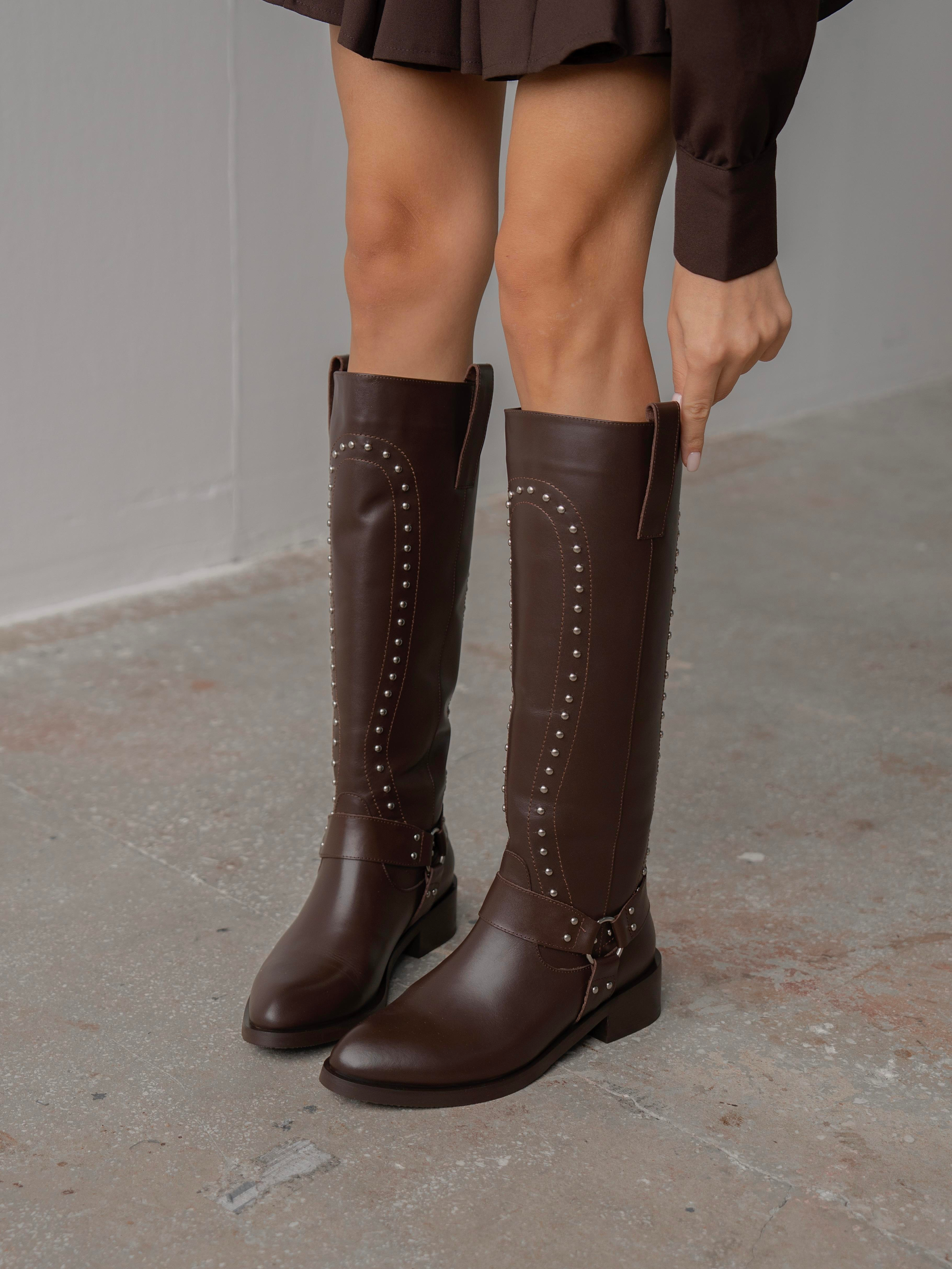 Faren Kahve Zımbalı Hakiki Deri Kadın Çizme