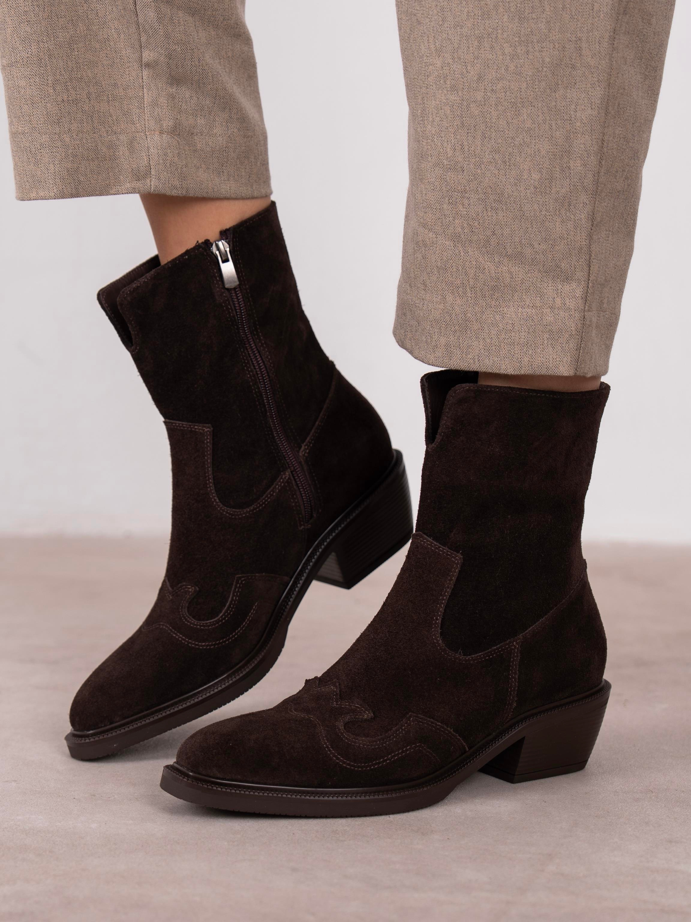 Krowe Kahve Süet Hakiki Deri Kadın Bot