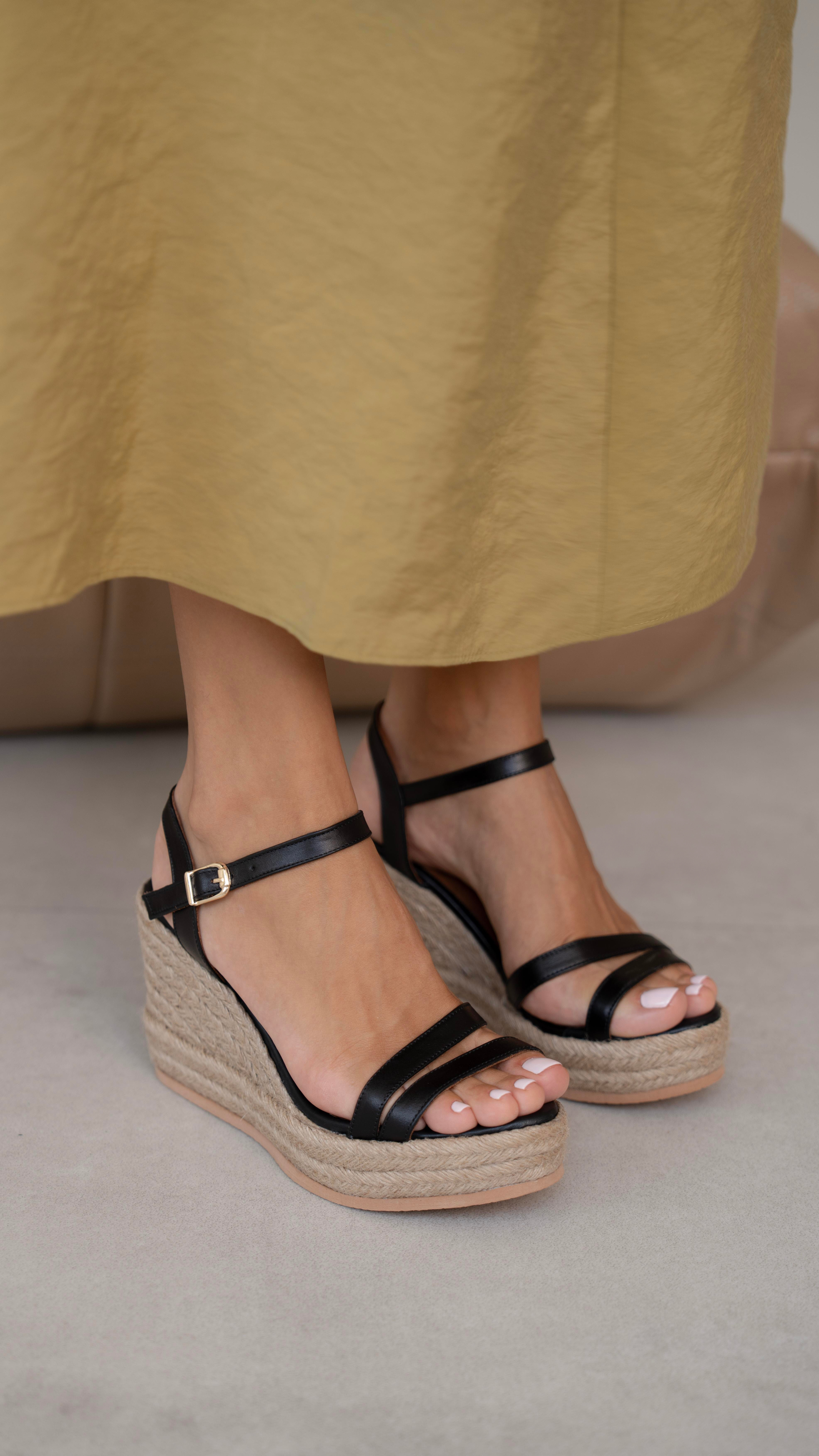 Milano Siyah Hakiki Deri Sandalet