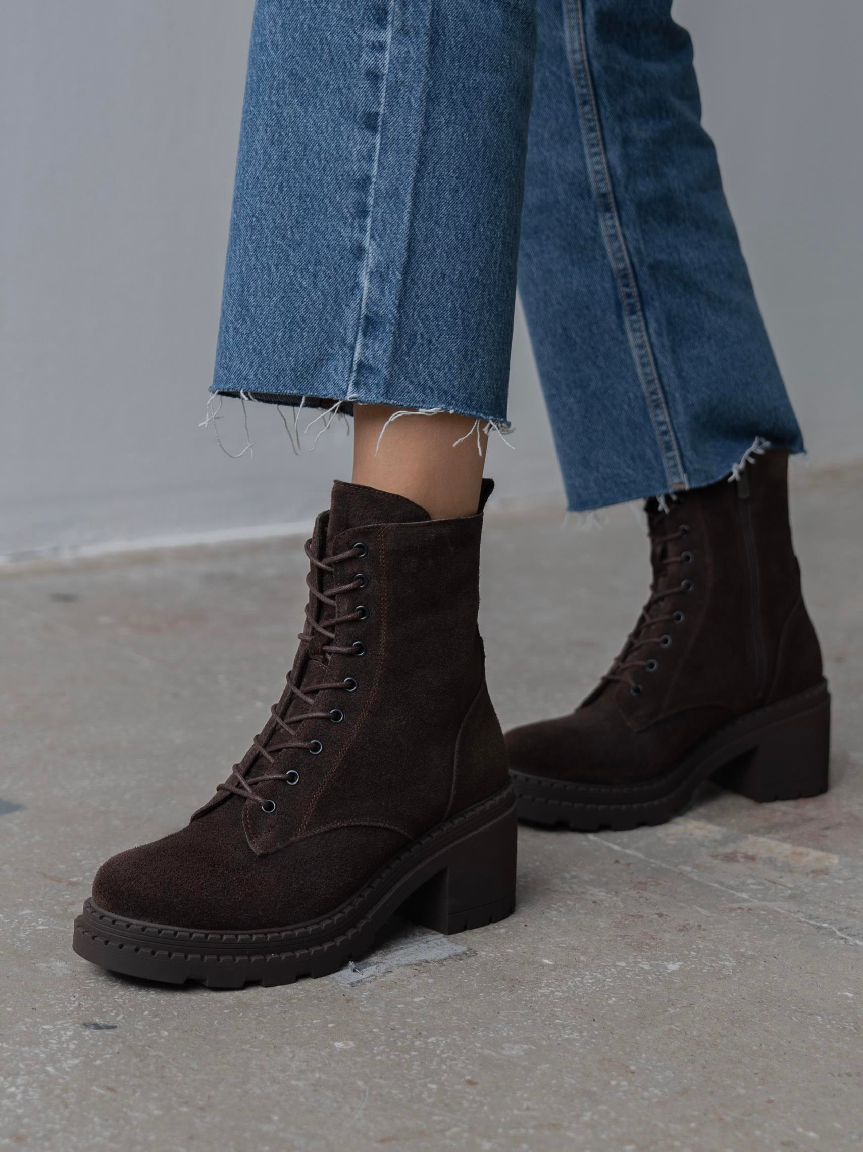 Nokka Kahve Süet Hakiki Deri Kadın Bot
