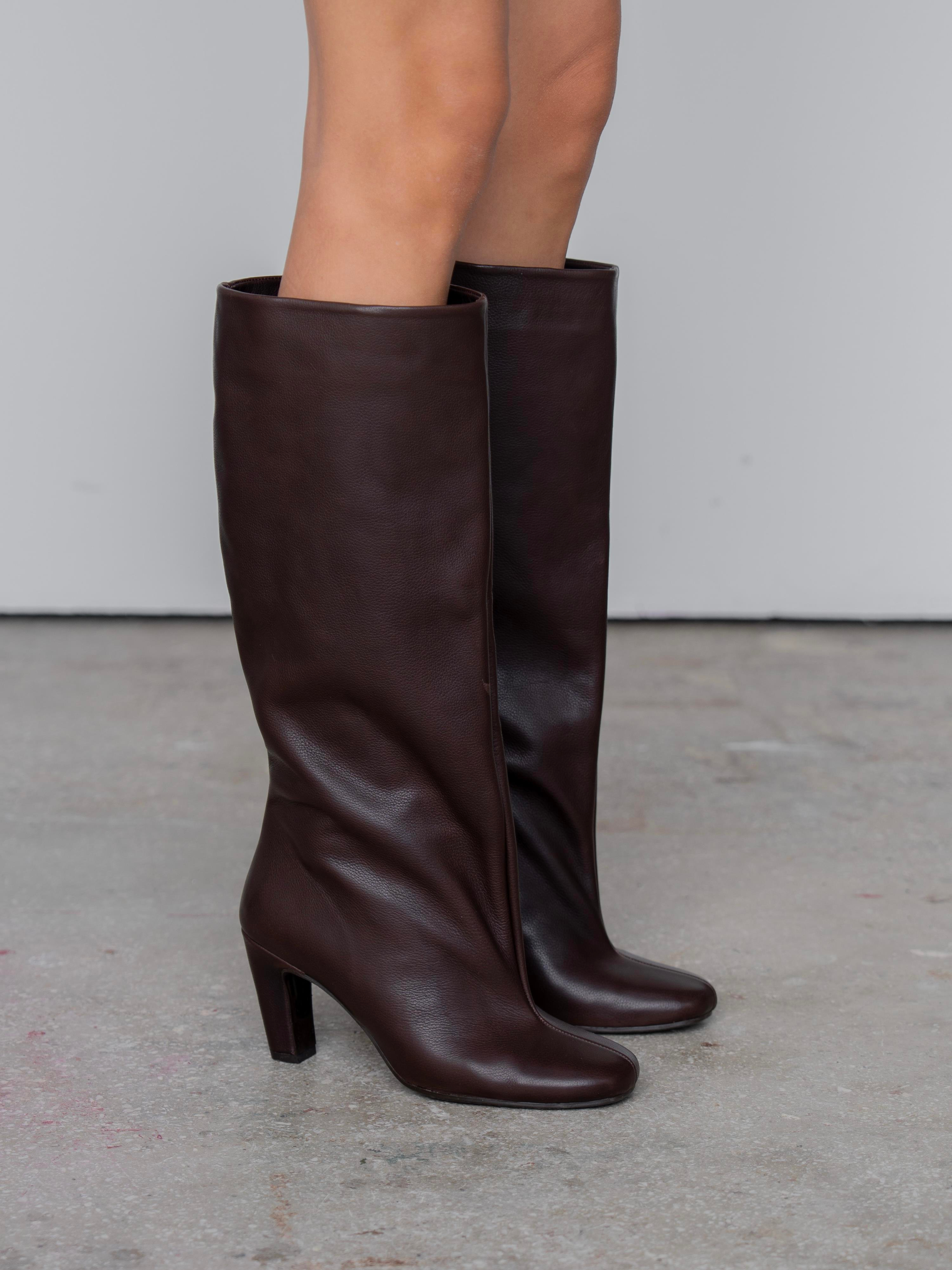 Nuvin Kahve Hakiki Deri Kadın Çizme