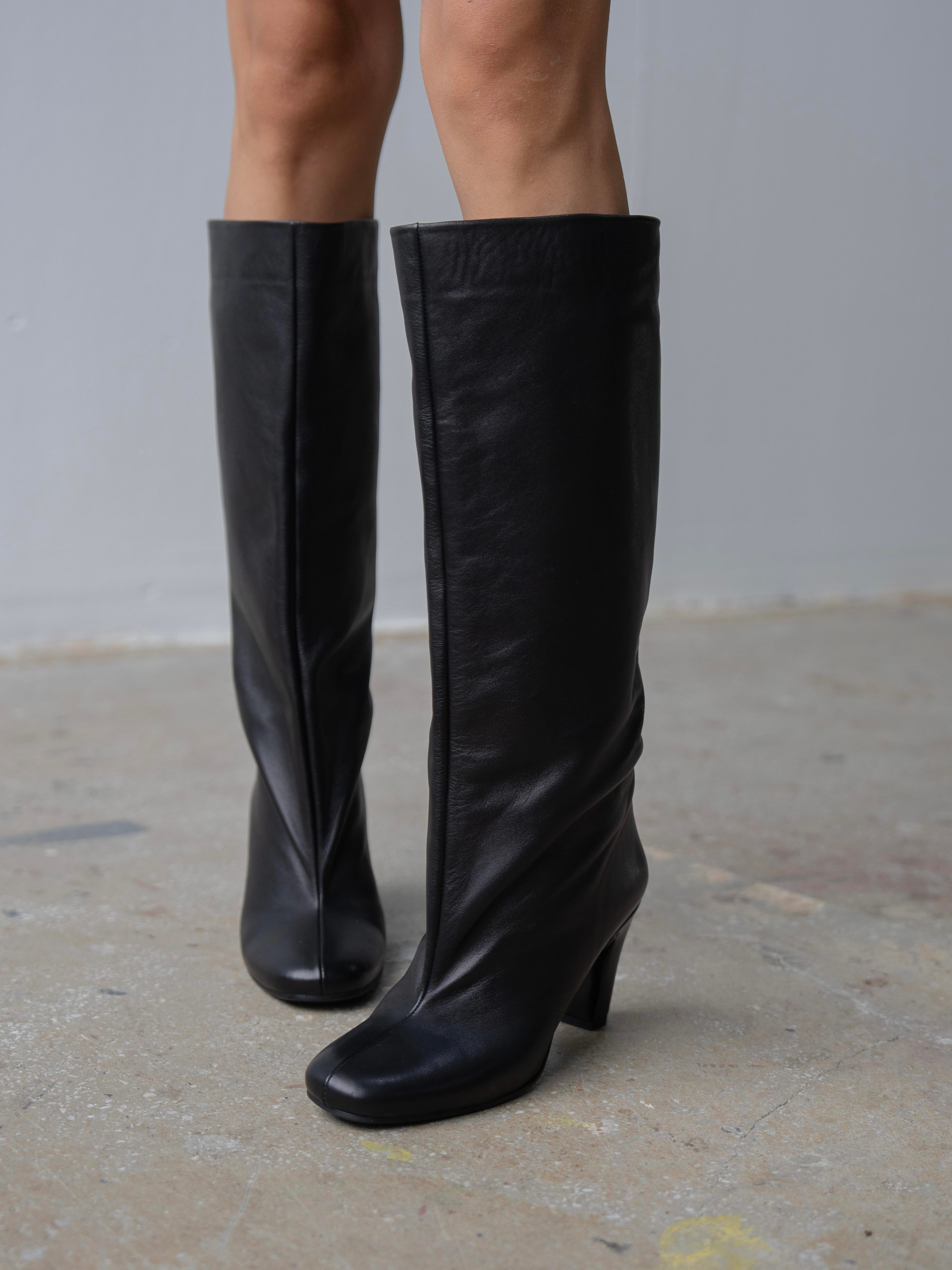 Nuvin Siyah Hakiki Deri Kadın Çizme